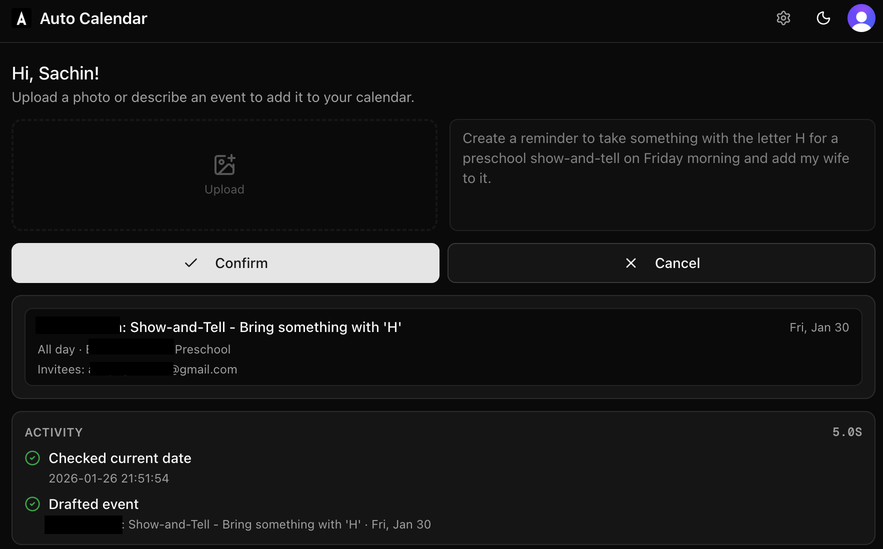 AutoCalendar.app lets me manage Google Calendar with natural language + images, with an optional preview step.